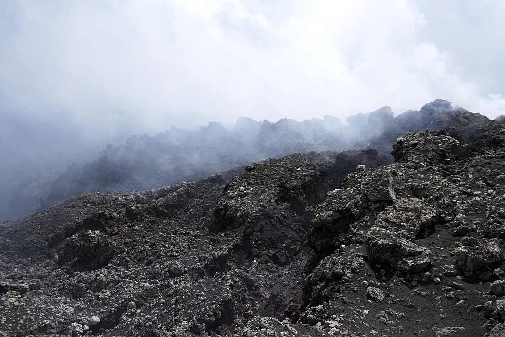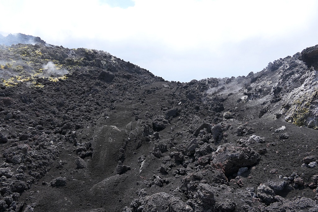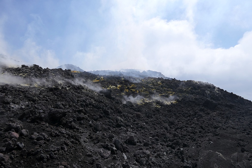 Die Voragine blieb bei meinem Besuch der Gipfelkrater leider unerreichbar. Allerdings konnte ich mich ihr von Osten und Westen her nähern. Durch die heftige eruptive Aktivität im Juli und