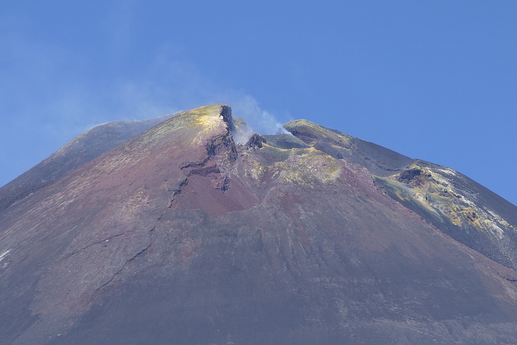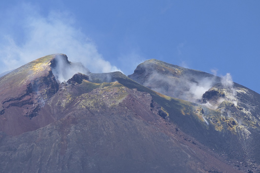 In der vergangenen Woche kam es an den Gipfelkratern lediglich zu ruhiger Gasemission. Diese war am Nordostkrater am kräftigsten und häufig pulsartig verstärkt. An der Voragine kam es zu diffus er Gasfreisetzung aus Fumarolenfeldern. An der Bocca Nuova setzte der nordwestliche Schlot anhaltend etwas Gas frei. Fumarolenfelder im nordwestlichen Abschnitt des Gipfelkraters emittierten anhaltend Gas. Am Südostkraterkomplex setzte ein Schlot an der oberen westlichen Flanke zeitweise etwas Gas frei. Ansonsten kam es im Gipfelbereich des Neuen Südostkraters zu anhaltenden Gasemissionen, die vor allem aus Fumarolenfeldern erfolgten. Am intensivsten waren sie im nordöstlichen Gipfelbereich bzw. im oberen Abschnitt der neuen nördlichen Bresche.