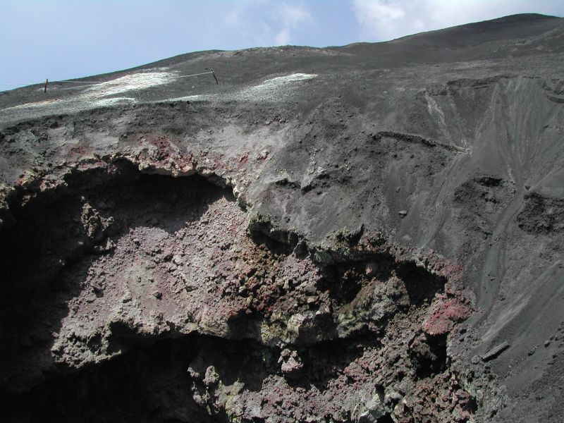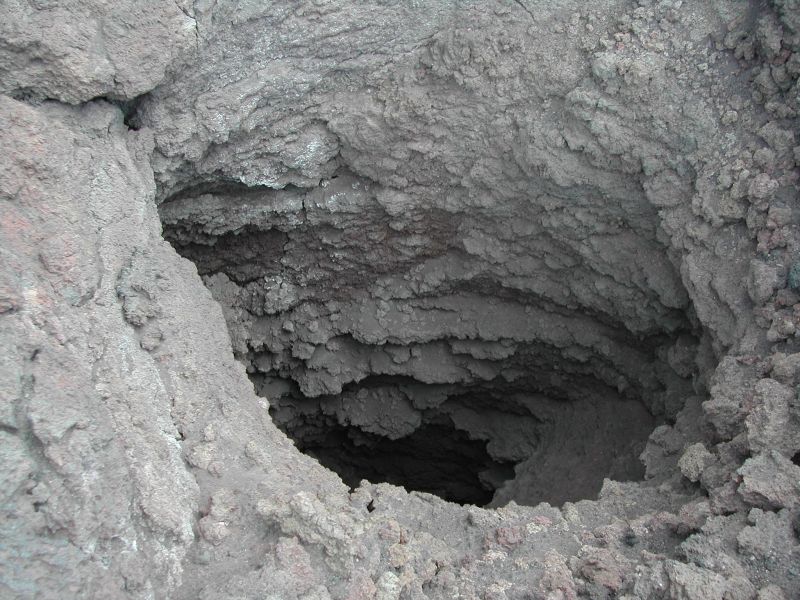 Der effusive Schlot vom 07.09.04 auf 2936 m Höhe. Er setze den ca. 292 m langen Lavastrom frei. Die Öffnung ist nur ca. 1 m breit.