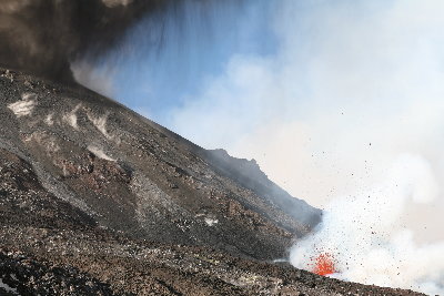 Südostkraters zu Ende gegangen. An der Ostflanke des Kegels kam es wieder zu etwas Aschefreisetzung verbunden mit strombolianischer Aktivität.