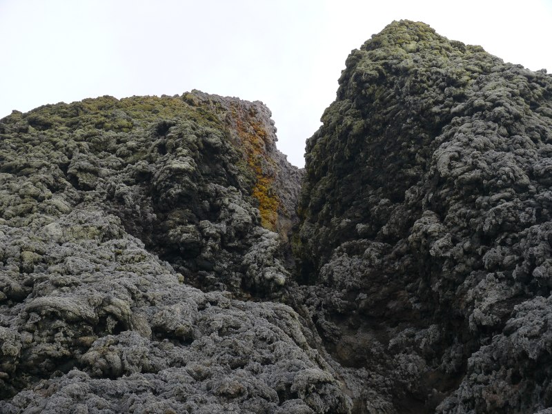 umgibt ist mit Schwefelablagerungen überzogen. Zum Schlot hin sind die Spalten tiefer und breiter. An der Stelle an der