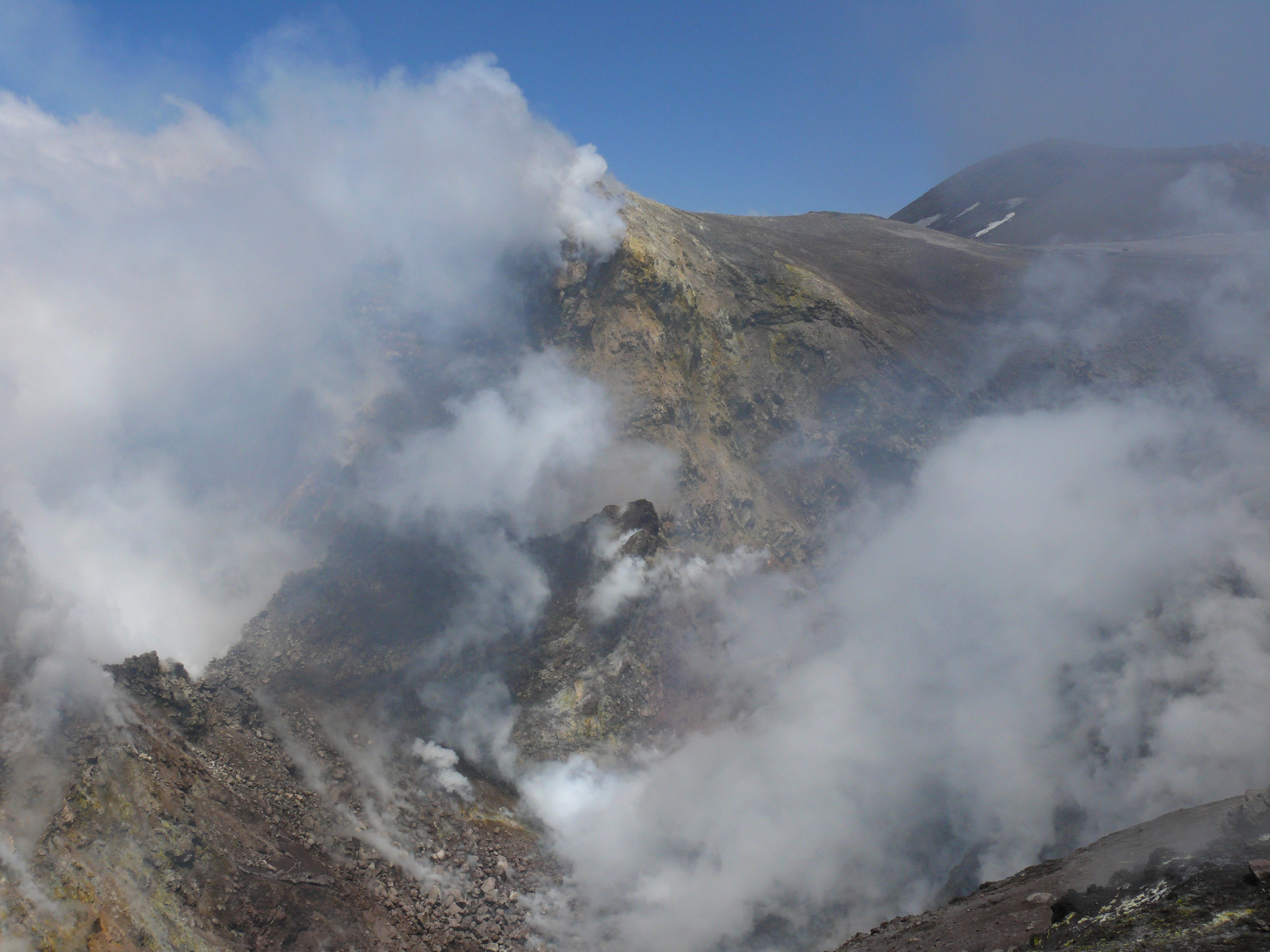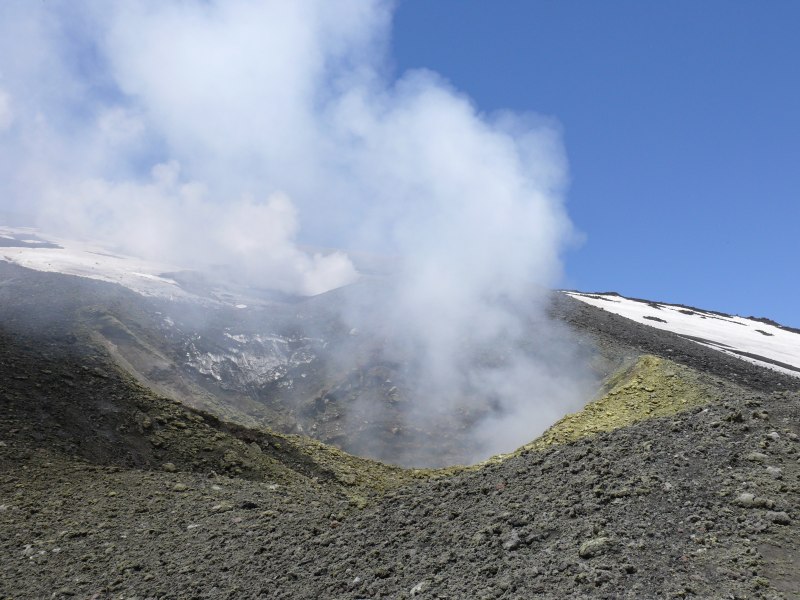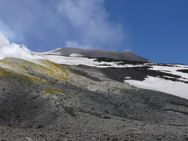 Dampf frei. An der oberen Ostflanke des Südostkraters existiert ein Fumarolenfeld. Es wird von einigen Spalten durchzogen