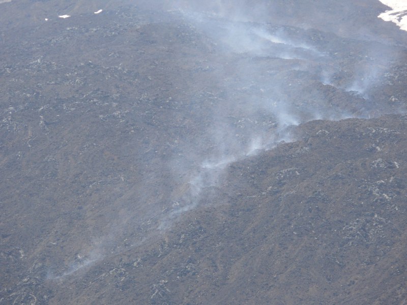 Wie das INGV berichtet hat sich die Lavaemission an der eruptiven Spalte im Vergleich zur Vorwoche leicht erhöht. Die Lavaströme änderten ihre Richtung von Tag zu Tag und kamen ähnlich weit voran wie in der vergangenen Woche. Am 30.04. wurde an einem der Schlote auf 2800 m Höhe Gasfreisetzung unter Druck beobachtet. Die pulsartigen Gasemissionen ereigneten sich etwa einmal pro Sekunde und enthielten auch etwas Asche. Im unteren Abschnitt der Spalte kam es an einem kleinen Schlackenkegel zu schwacher Gasemission. Dieser Kegel gehört zu dem Lavakanal der von den Schloten aus einige hundert Meter dem Hang hinab führt und dort die temporären Schlote nährt [1].