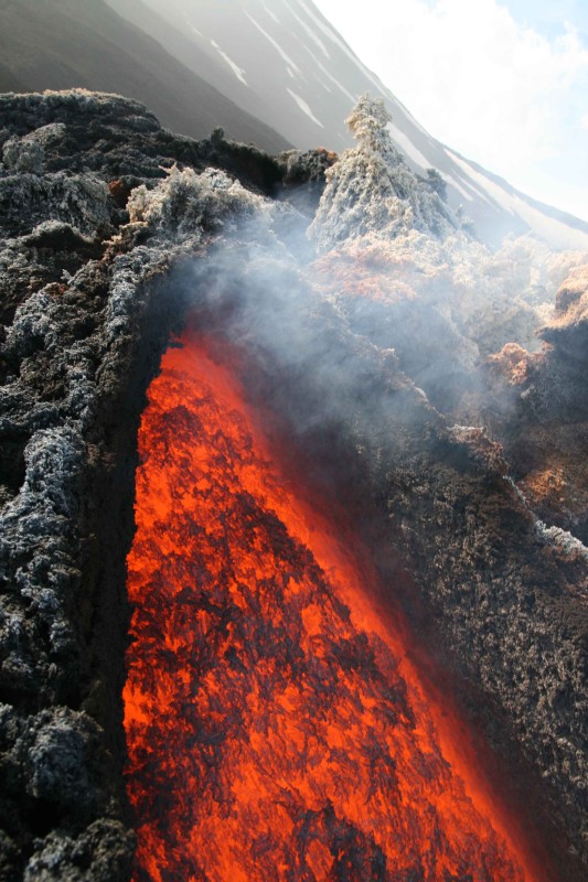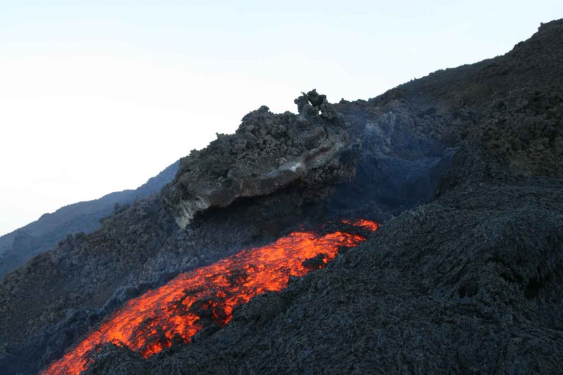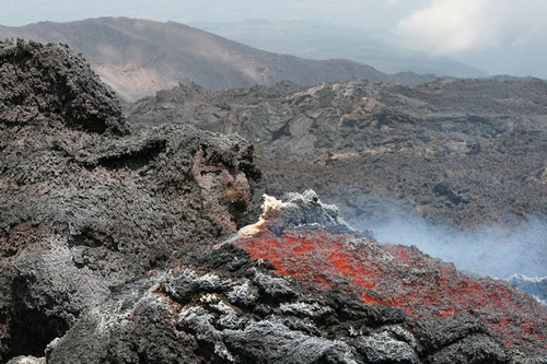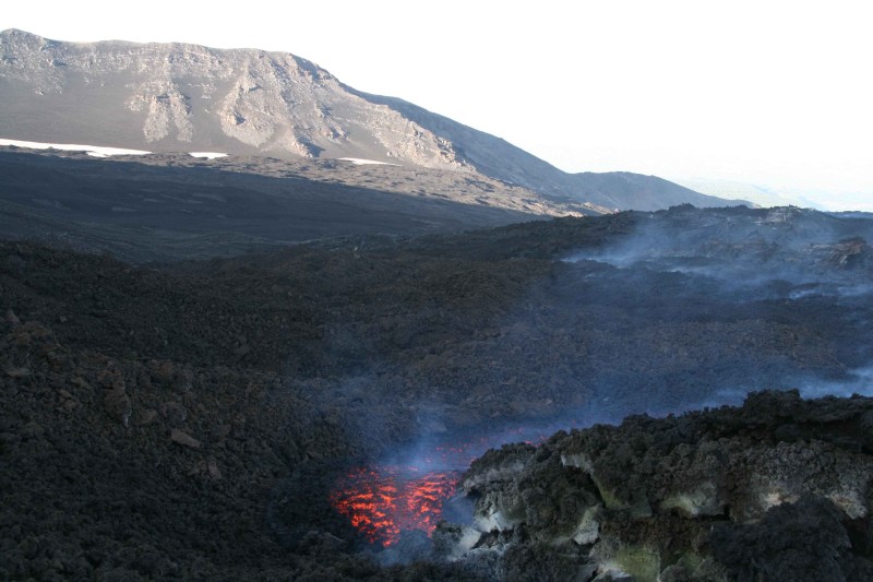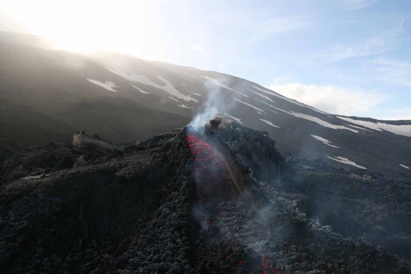 Wie das INGV berichtet dauerte in der vergangenen Woche die bescheidene effusive Aktivität an der eruptiven Spalte weiterhin an. Ein temporärer Schlot im oberen nordöstlichen Bereich des Lavafelds förderte diverse kurze Lavaströme. Ihre Länge betrug mehrere hundert Meter und sie bewegten sich auf 2500 - 2600 m hohem Gelände.