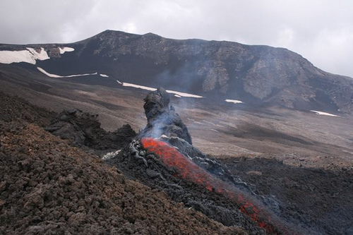 Wie das INGV berichtet setzte sich in der vergangenen Woche die schwache effusive Aktivität an der eruptiven Spalte auf ca. 2800 m Höhe fort. Weiterhin nährte ein temporärer Schlot diverse kurze Lavaströme die sich auf 2500 - 2600 m hohem Gelände, im nordöstlichen Abschnitt des Lavafelds bewegten [1].