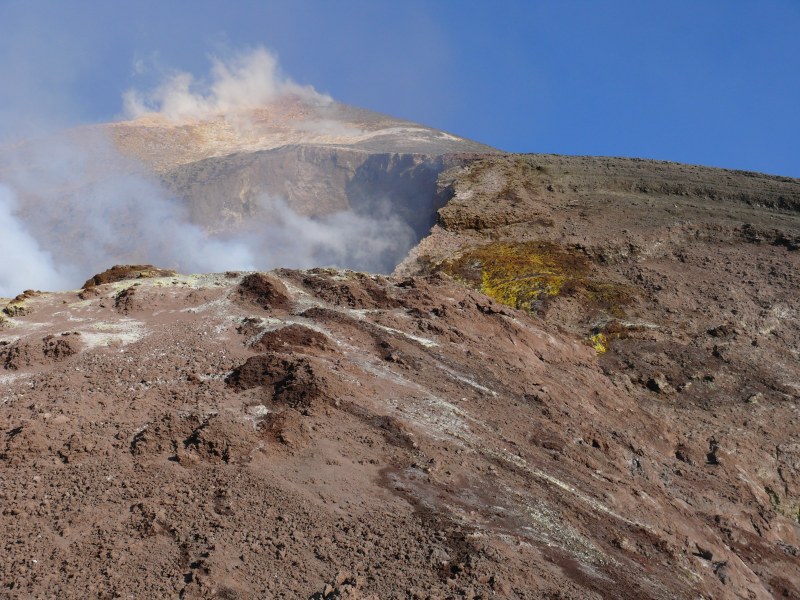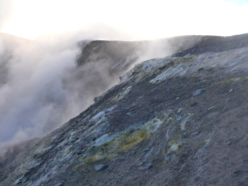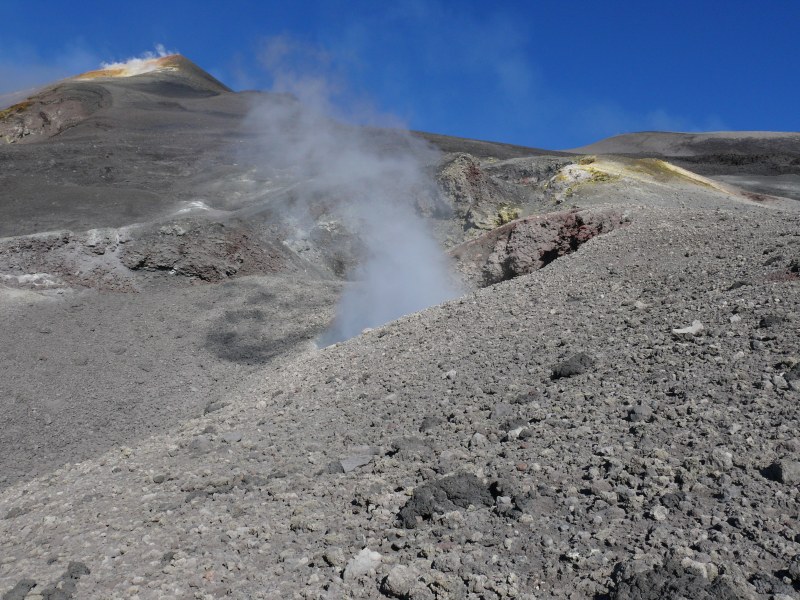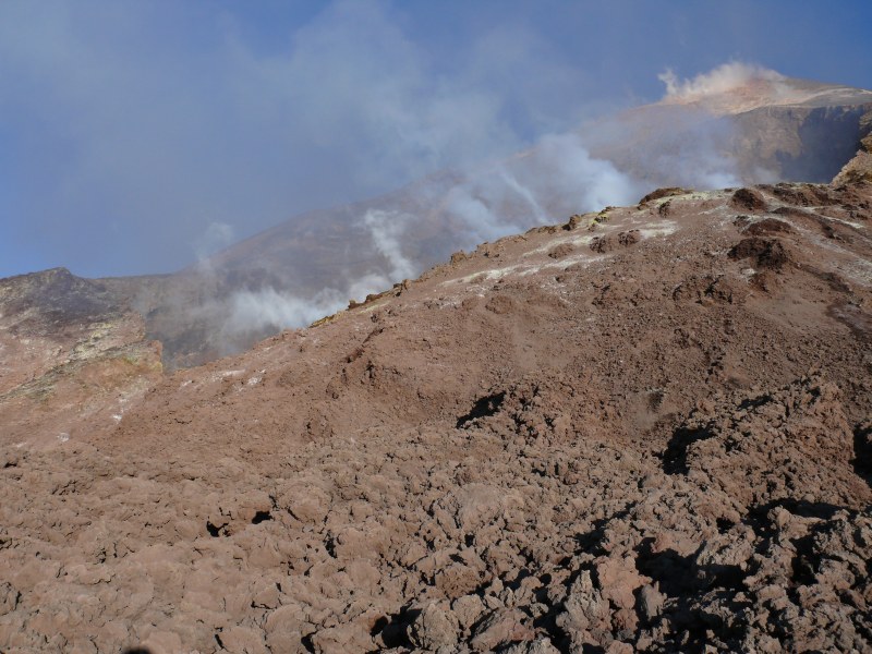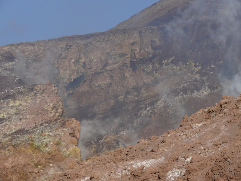 Die Aktivität der Fumarolen die sich auf der Plattform im begehbaren westlichen Bereich der Bocca Nuova befinden, scheint seit dem vergangenen Jahr etwas zugenommen zu haben. Es riecht hier nicht nur nach Schwefeldioxid sondern auch nach Schwefelwasserstoff.