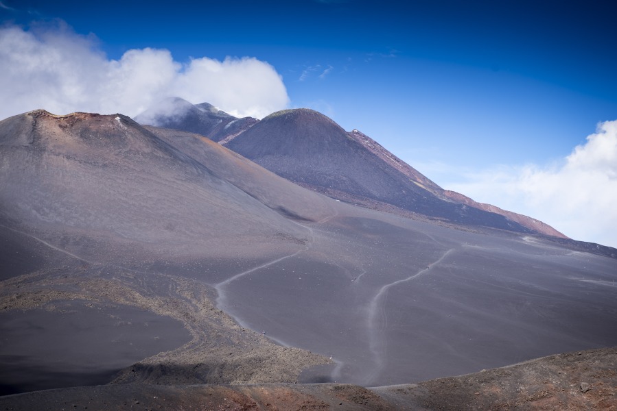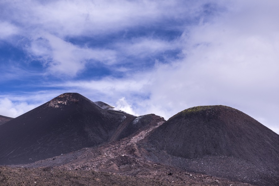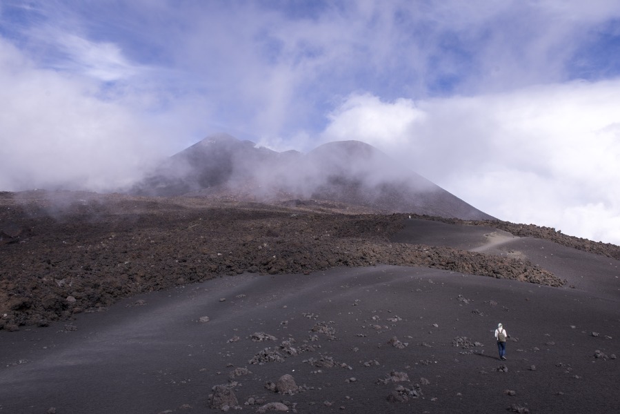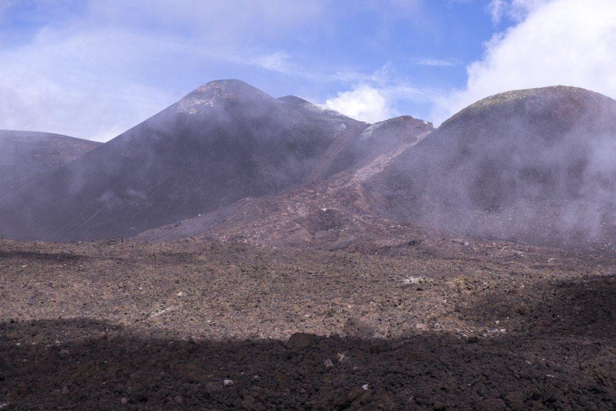 Auch in der vergangenen Woche konzentrierten sich die Gasemissionen an den Gipfelkratern auf Nordostkrater und Bocca Nuova. An der Bocca Nuova waren die Gasfreisetzungen meist anhaltend, manchmal aber auch pulsartig verstärkt. Heute wirkten sie etwas intensiver als an den Vortagen. Am alten Südostkrater setzten die Fumarolen an seiner oberen Ostflanke das meiste Gas frei. Am Neuen Südostkrater waren die Gasemissionen im Bereich des Sattels, zwischen den Kegeln des alten bzw. neuen Südostkraters am stärksten. Aus dem zentralen Schlot des Neuen Südostkraters war nur an Tagen mit erhöhter Luftfeuchtigkeit etwas Gas- oder Dampfemission erkennbar. Glutschein oder neue Ascheemissionen konnte ich nicht beobachten.