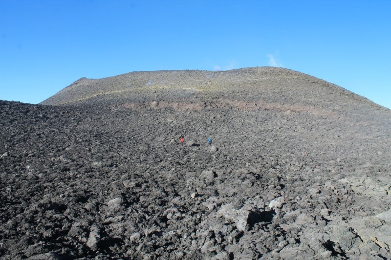 Eine Wüste aus großen Schlackebrocken überzieht die obere Ostflanke des Zentralkraterkegels. Im Hintergrund der Nordostkrater dessen Südflanke ebenfalls mit reichlich pyroklastischem Material bedeckt ist.