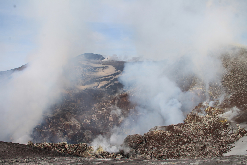 Am 08. und 09. Oktober wurden die Gipfelkrater von INGV-Personal besucht. Dabei wurde eine Fortsetzung der milden strombolianischen Aktivität im nordwestlichen Abschnitt der Bocca Nuova beobachtet. In ihrem östlichen Teil, wo sich ein Kollapskrater entwickelt hat, setzten mehrere Öffnungen auf dem Kraterboden heißes Gas frei. Am Nordostkrater wurde pulsartige Ascheemission aus einer Öffnung auf dem Kraterboden beobachtet. Der Kollapskrater an der Ostflanke des Neuen Südostkraters generierte sporadische und schwache Ascheemissionen [1].