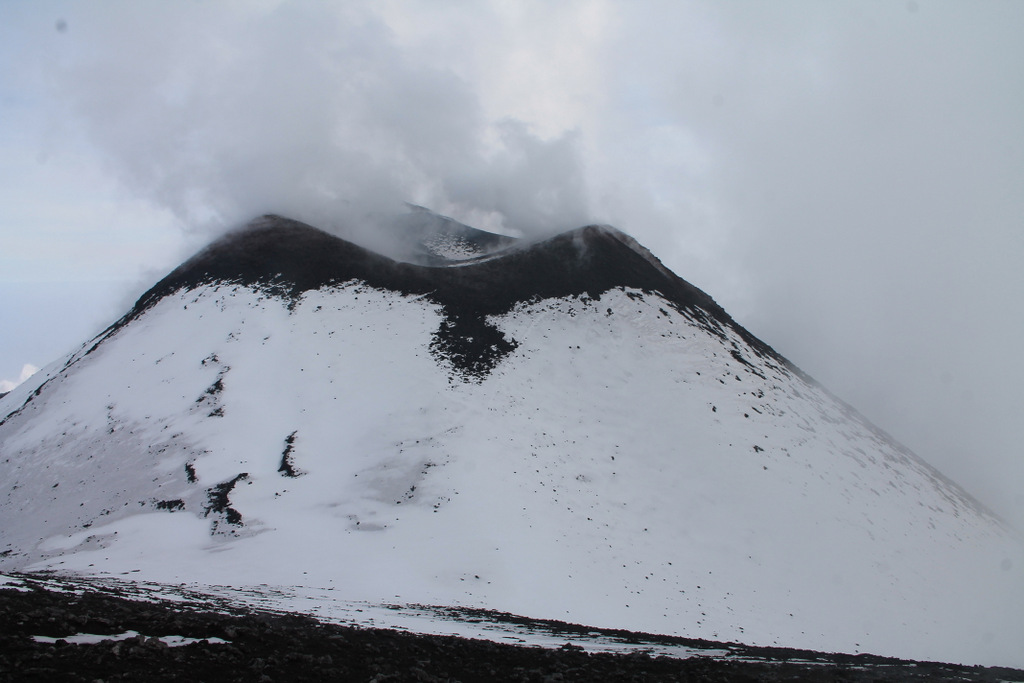 Während der vergangenen Nacht setzte sich die Lavaemission an dem unteren Schlot der gestern entstandenen eruptiven Spalte fort. Der schmale Strom bewegte sich weiterhin rasch dem steilen westlichen Hang des Valle del Bove hinab und strömte auf der westlichen Talsohle, im Gebiet des Monte Centenari weiter nach Osten. Der obere Abschnitt der eruptiven Spalte war dagegen nahezu inaktiv und die vorhandenen thermischen Anomalien schwächten sich allmählich ab. Gleichzeitig dauerte die eruptive Aktivität in der Bocca Nuova an. Immer wieder zeigten sich kleine thermische Anomalien über dem nordwestlichen Abschnitt des Gipfelkraters. Offenbar wurden sie durch die Freisetzung von heißem pyroklastischen Material, vermutlich überwiegend Asche, verursacht. Leider verschlechterte sich noch vor Sonnenaufgang das Wetter und bis zum Nachmittag verhinderten Wolken und Neuschnee den Blick auf den Gipfelbereich. Als es gegen 16:00 Uhr wieder auflockerte waren über der Bocca Nuova dicke graue Wolken aus Gas, Wasserdampf und etwas Asche zu erkennen. Gelegentlich waren diese Wolken auch von dichteren, dunklen Aschewolken durchsetzt. Der Wind verfrachtete die Aschewolken in südöstliche Richtung. Nach wie vor waren die Emissionen der Bocca Nuova vom Auswurf heißen pyroklastischen Materials begleitet, wie Fotos der Bronte-Wärmebildkamera des INGV zeigten. Diese Aktivität intensivierte sich im Verlauf des Nachmittags und abends immer mehr. Ob sich diese Aktivität nur auf strombolianische Explosionen zurückführen lässt oder ob sie sogar durch die Freisetzung von Lavafontänen verursacht wird ist mir unklar. Unklar blieb bis zum heutigen Abend auch, ob die effusive Aktivität am unteren Schlot der eruptiven Spalte weiterhin andauert, da nach wie vor dichte Wolken den Blick in dieses Gebiet verhindern.