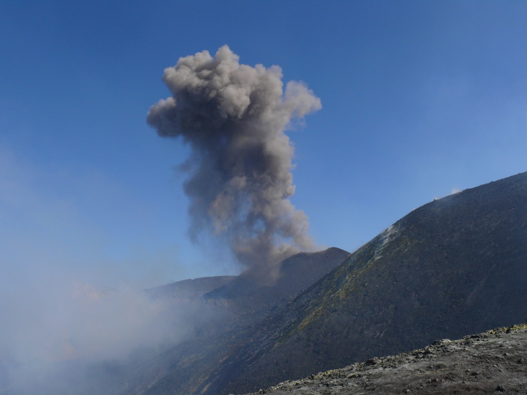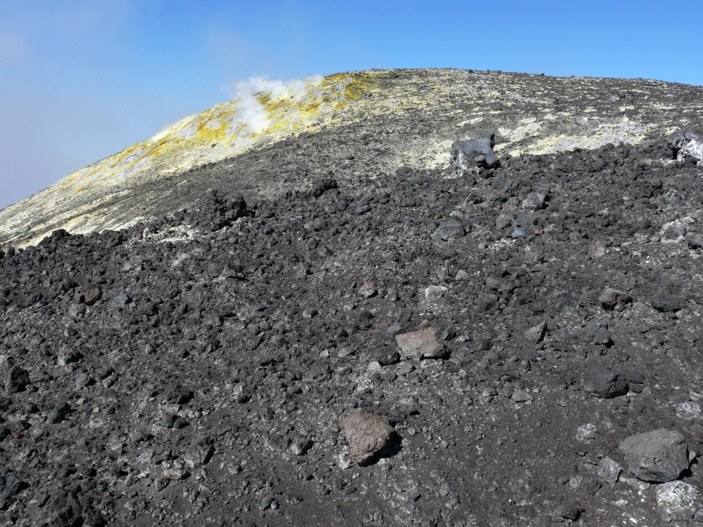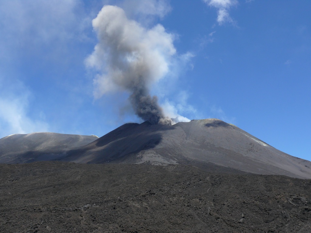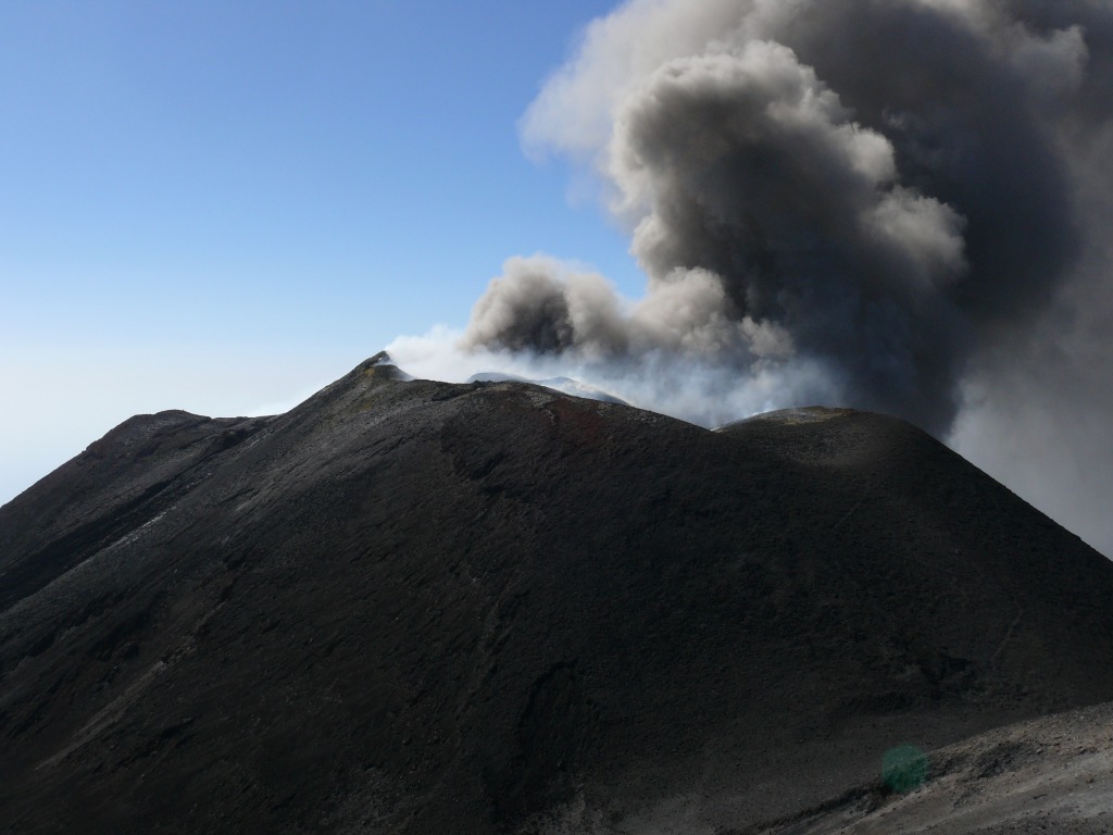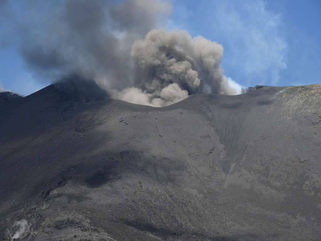 In der vergangenen Woche wechselten sich am Sattelschlot des Südostkraterkomplexes weiterhin Phasen erhöhter strombolianischer Aktivität mit Phasen tiefsitzender explosiver Aktivität ab. Zwischenzeitlich kam es auch immer wieder zu Ascheemissionen, die vor allem dann auftraten, wenn die Intensität der Aktivität wechselte. Einige stärkere strombolianische Explosionen schleuderten das glühende pyroklastische Material auf den Rand des Schlots, wobei einige Bomben auch der südlichen Flanke des Südostkraterkomplexes hinab rollten. Phasenweise kam es auch zur Freisetzung von bläulichem Gas unter starker Geräuschentwicklung; das Fauchen war bis hinunter zum Touristenkomplex am Rifugio Sapienza zu hören.