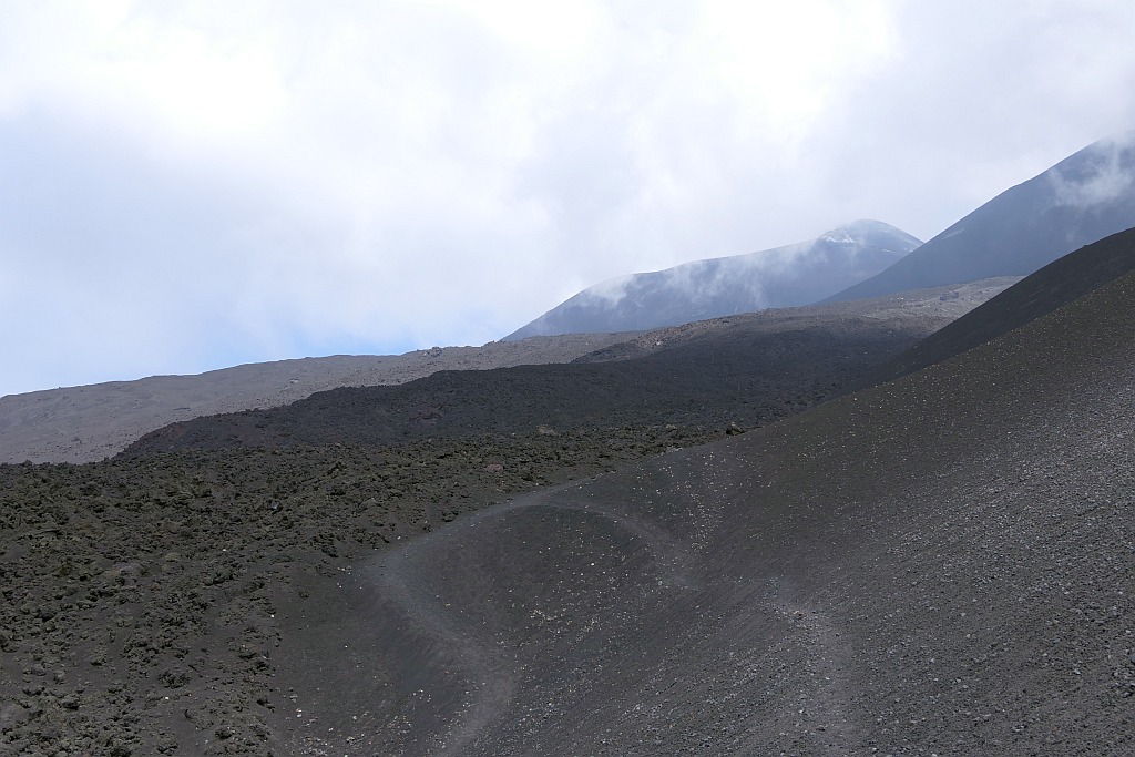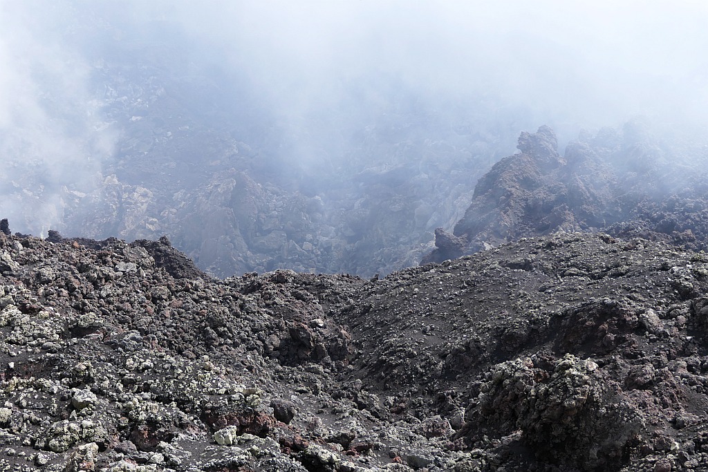 Die Voragine blieb bei meinem Besuch der Gipfelkrater leider unerreichbar. Allerdings konnte ich mich ihr von Osten und Westen her nähern. Durch die heftige eruptive Aktivität im Juli und